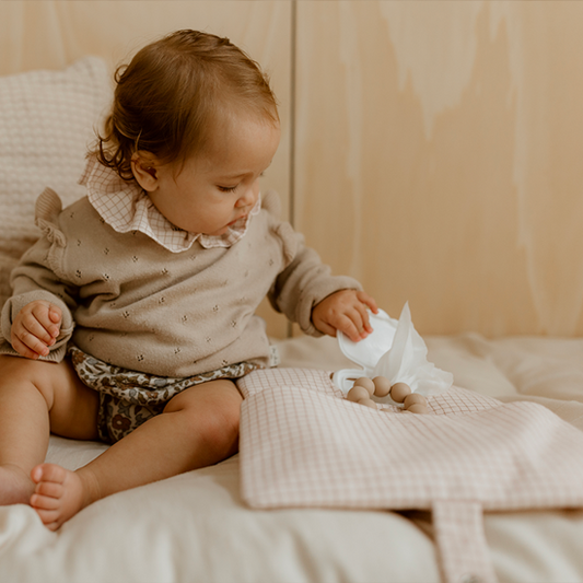 Des produits en gaze de coton tout doux, personnalisés avec de jolis petits mots.