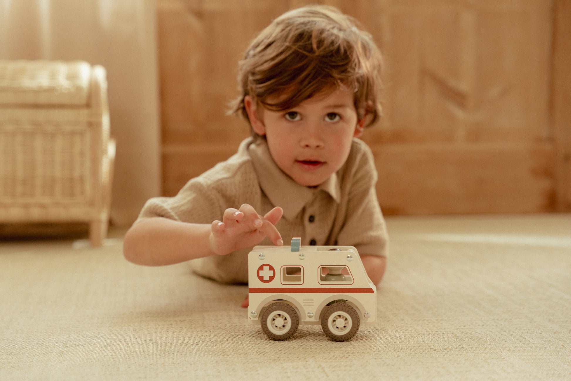 Sirène en marche, il est temps d’intervenir ! Cette ambulance en bois, équipée de roues en caoutchouc pour un déplacement fluide, transporte rapidement les patients jusqu’à l’hôpital. L’intérieur offre de la place pour accueillir un patient, et l’ensemble inclut également une figurine d’infirmière en bois. Parfait pour encourager le jeu de rôle et stimuler l’imagination.