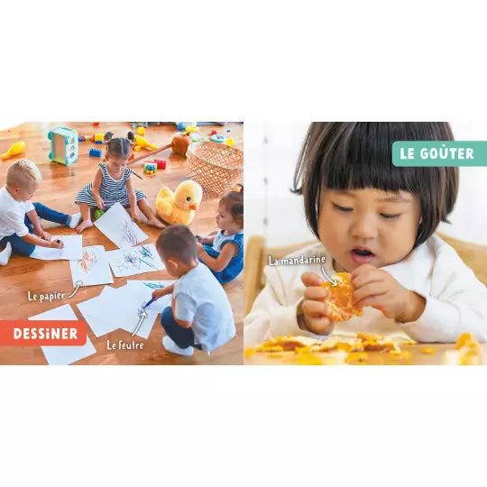 Grâce à 24 photos réalistes et ancrées dans le réel, l’enfant découvre les rituels de la journée. Il apprend ainsi à les reconnaître et les nommer.