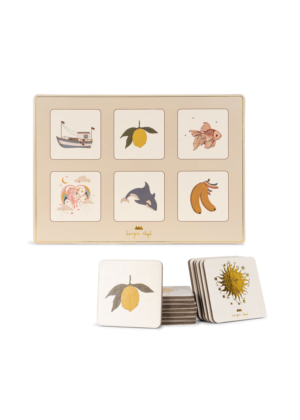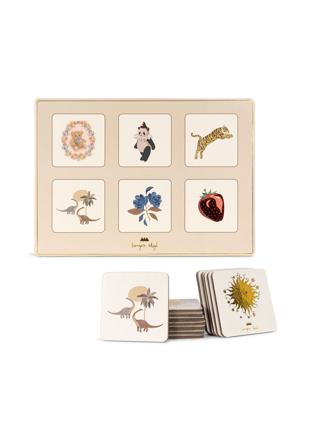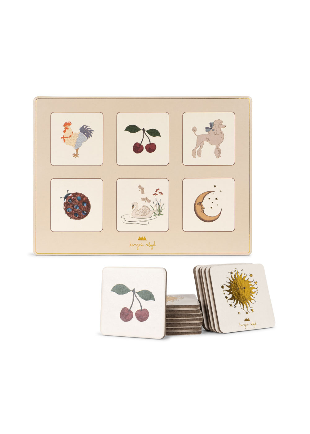 Un favori de tous les temps : Classique loto photo pour des soirées de jeux familiales amusantes. La loterie d’images comprend 6 plateaux de jeu et 36 pièces avec des illustrations colorées dessinées à la main de Konges Sløjd.