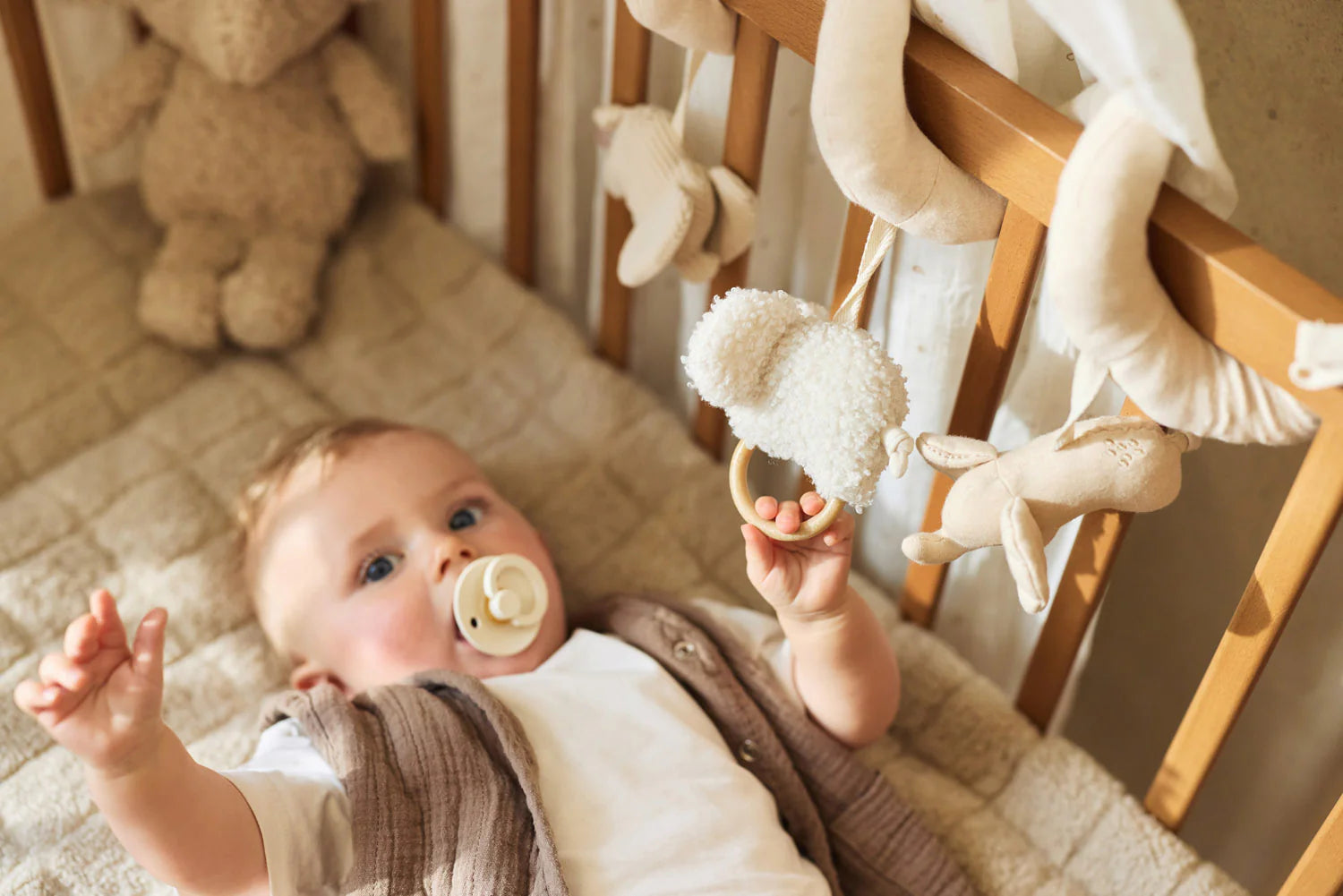 Cette spirale d'activités joyeuse de la collection Elephant Tales est conçue pour stimuler les sens de votre bébé et encourager son développement moteur. Composée de trois adorables éléphants – un en tissu côtelé doux, un avec des oreilles à carreaux et un en velours luxueux – elle propose une variété de textures et de couleurs qui éveillent la curiosité de bébé. Facile à attacher à la poignée du siège-auto (type Maxi-Cosi) ou au parc, elle garde les jouets préférés de votre enfant toujours à portée de main.