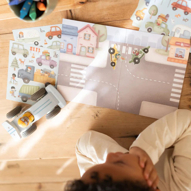 Laissez l'imagination de votre enfant prendre vie avec cet ensemble d'autocollants joyeux. Avec plus de 90 autocollants colorés et un fond de jeu double face, votre petit peut couper, coller et inventer des histoires sans fin. Idéal pour des moments créatifs ensemble. Fabriqué en papier robuste et parfait pour être combiné avec d'autres fournitures d'artisanat