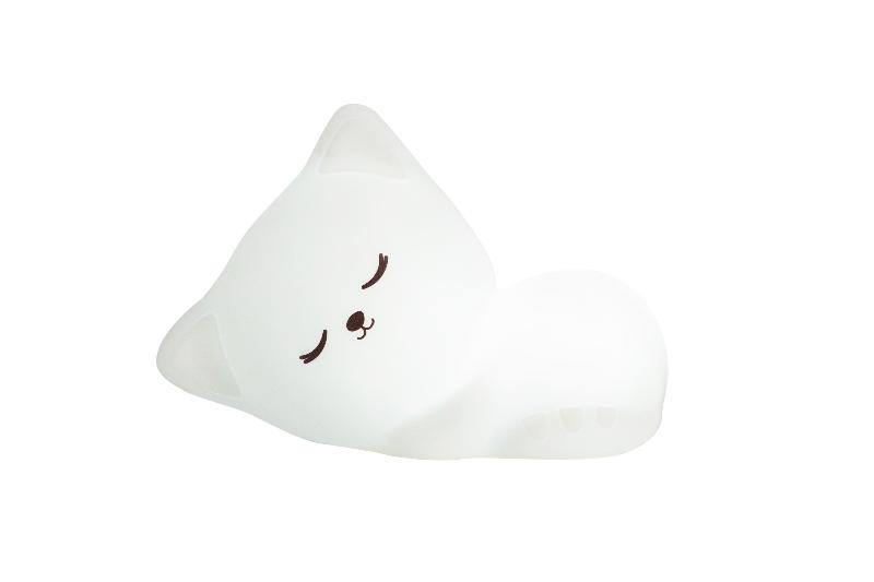 Stella le chat blanc est une veilleuse tactile souple en silicone et très douce au toucher.