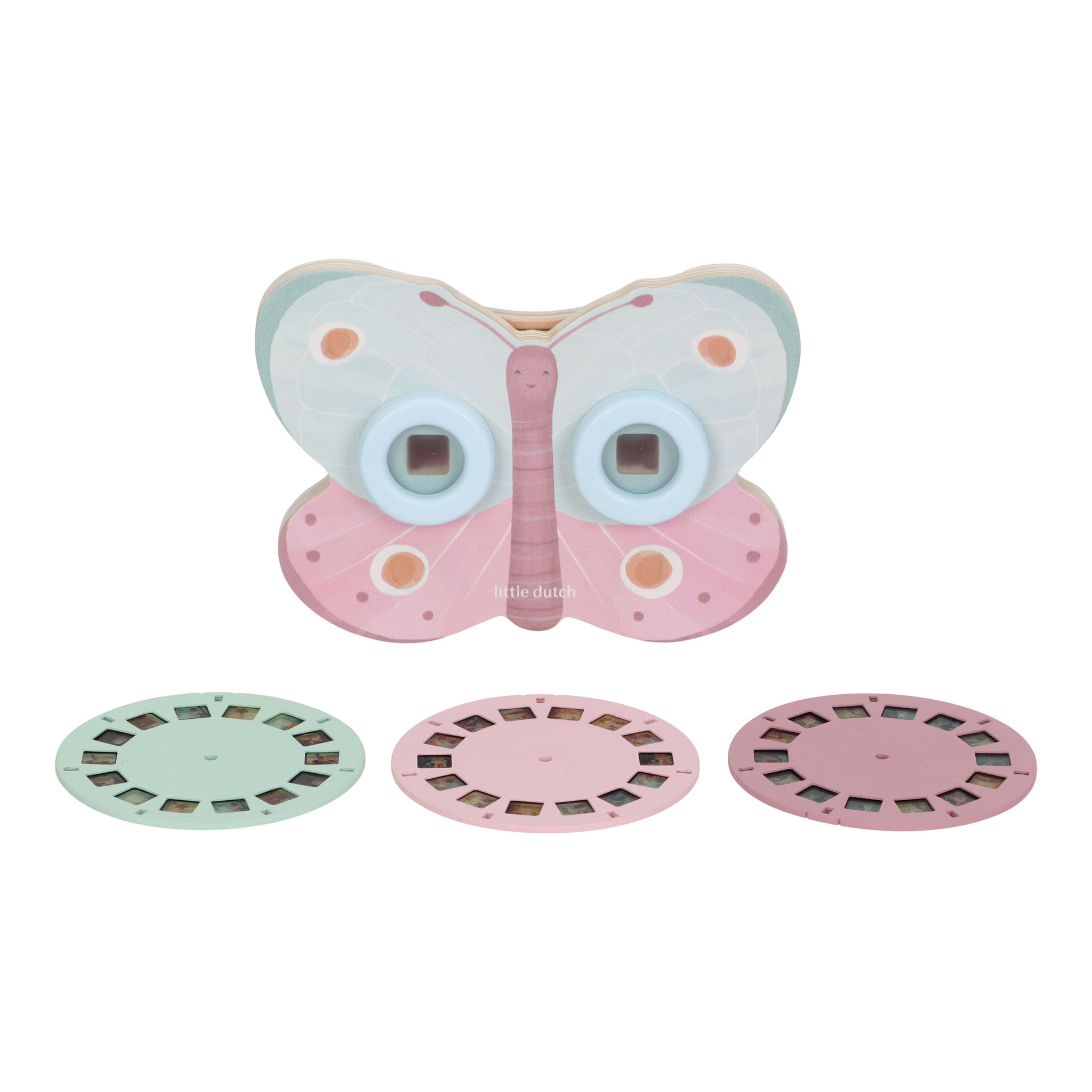 Cette visionneuse invite les petites curieuses à plonger au cœur d'un monde féérique ! Grâce à ses trois disques illustrés, elle dévoile, tour après tour, la vie merveilleuse de ses habitants. Des fées aux biches jusqu'aux jolis papillons, chaque image est une opportunité pour votre enfant de raconter de nouvelles histoires et de découvrir cet univers magique tout en s'amusant. Facile à manipuler et joliment décorée, c’est l’accessoire idéal pour éveiller la curiosité et le sens de l’observation en douceur. Alors, prêt pour une balade féerique ?